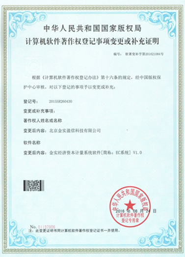 - 經(jīng)濟(jì)資本計(jì)量系統(tǒng)軟件著作權(quán)登記證書