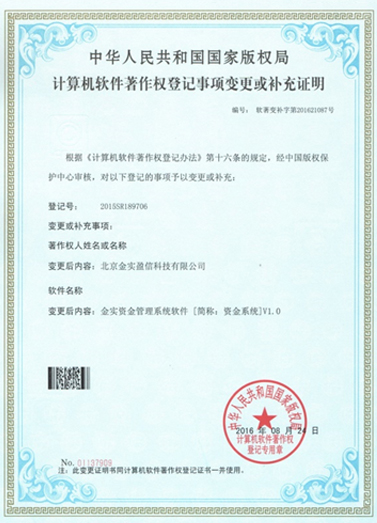 - 資金系統(tǒng)軟件著作權(quán)登記證書