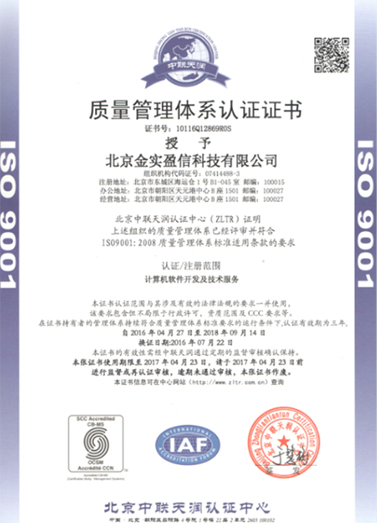 - 金實(shí)盈信ISO9001質(zhì)量管理體系認(rèn)證證書